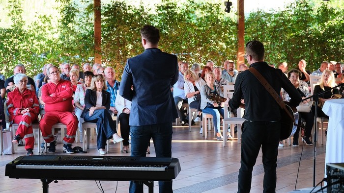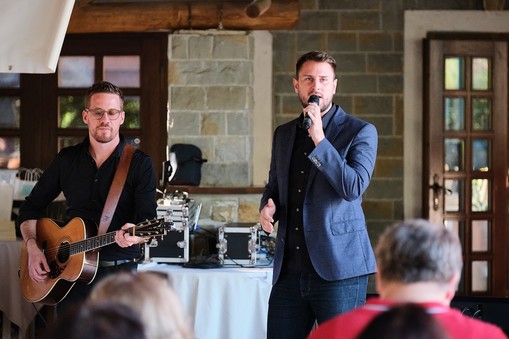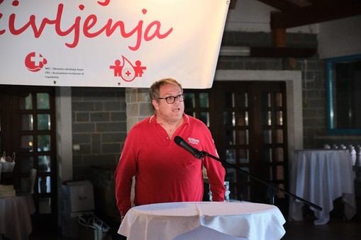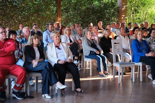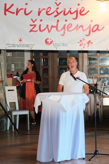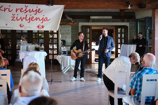 Svečano podelitev je odprl Gregor Ravnik, ki nas je za popestritev tega popoldneva, v spremljavi Marka Hrvatina razveselil z dvema svojima uspešnicama. Sledila mu je predsednica Območnega združenja Koper ga. Marta Vrčon Komel. Tople besede so za naše jubilante imela tudi dr. Danijel Starman, predstavnik občine Ankaran in ga. Tanja Grandič s centra za transfuzijsko dejavnost Izola.