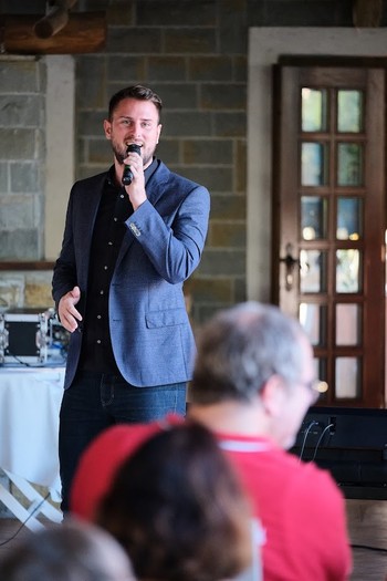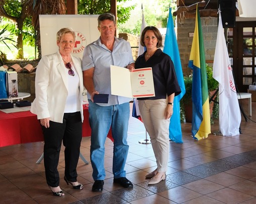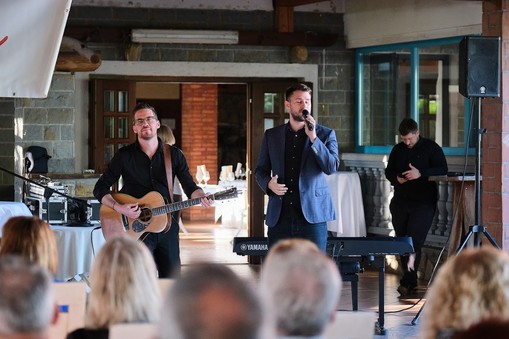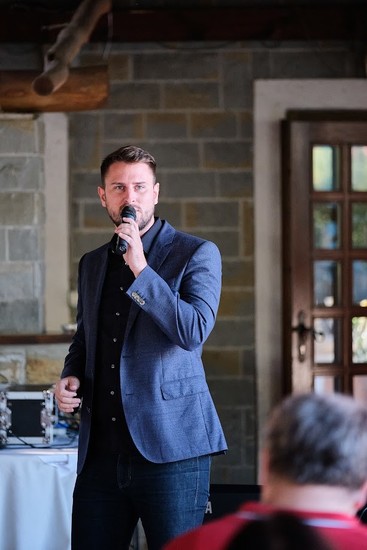 Na prizorišču smo pozdravili tiste, ki so v letu 2024 prestopili pomemben mejnik. Ob vrhuncu tega večera, bomo med viteze sprejeli tri gospode, saj so v lanskem letu kri darovali stotič. Vsi trije novo imenovani Vitezi krvodajalstva prihajajo iz Luke Koper in prepričani smo, da so v podjetju zelo ponosni na njih. V ta namen smo k mikrofonu povabili g. Rotarja, ki je poudaril pomen krvodajalstva tudi s strani delodajalca, predvsem pa izrazil ponos in spoštovanje do vseh zbranih krvodajalcev.